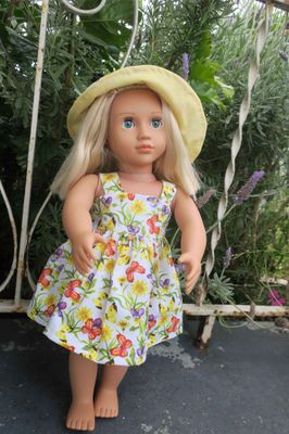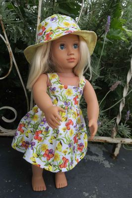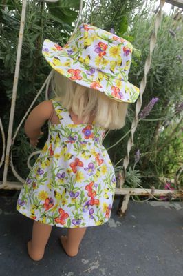 Doll sundress and hat, yellow floral, 46cm doll