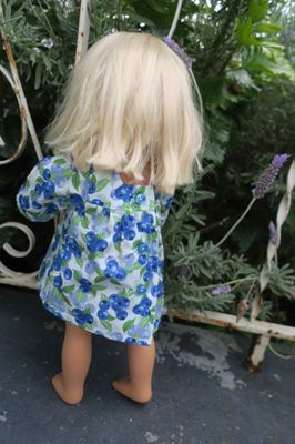 Doll dress, blueberry print, square neck, 46cm doll